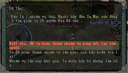 • Về vấn đề hủy nhầm nhiệm vụ dẫn tới mất chuỗi nhiệm vụ dã tẩu: Nếu nhân sĩ nào gặp trường hợp bấm nhầm hủy dẫn tới mất chuỗi nhiệm vụ dã tẩu, thì việc cần làm đầu tiên là thoát acc và không thực hiện bất kỳ giao dịch nào. Sau đó liên hệ fanpage để báo, nếu sau khi hủy chuỗi dã tẩu mà vẫn tiếp tục online và thực hiện giao dịch với các nhân vật khác, BQT sẽ không hỗ trợ phục hồi chuỗi nhiệm vụ. Phí phục hồi chuỗi nhiệm vụ dã tẩu là 200 tiền đồng.